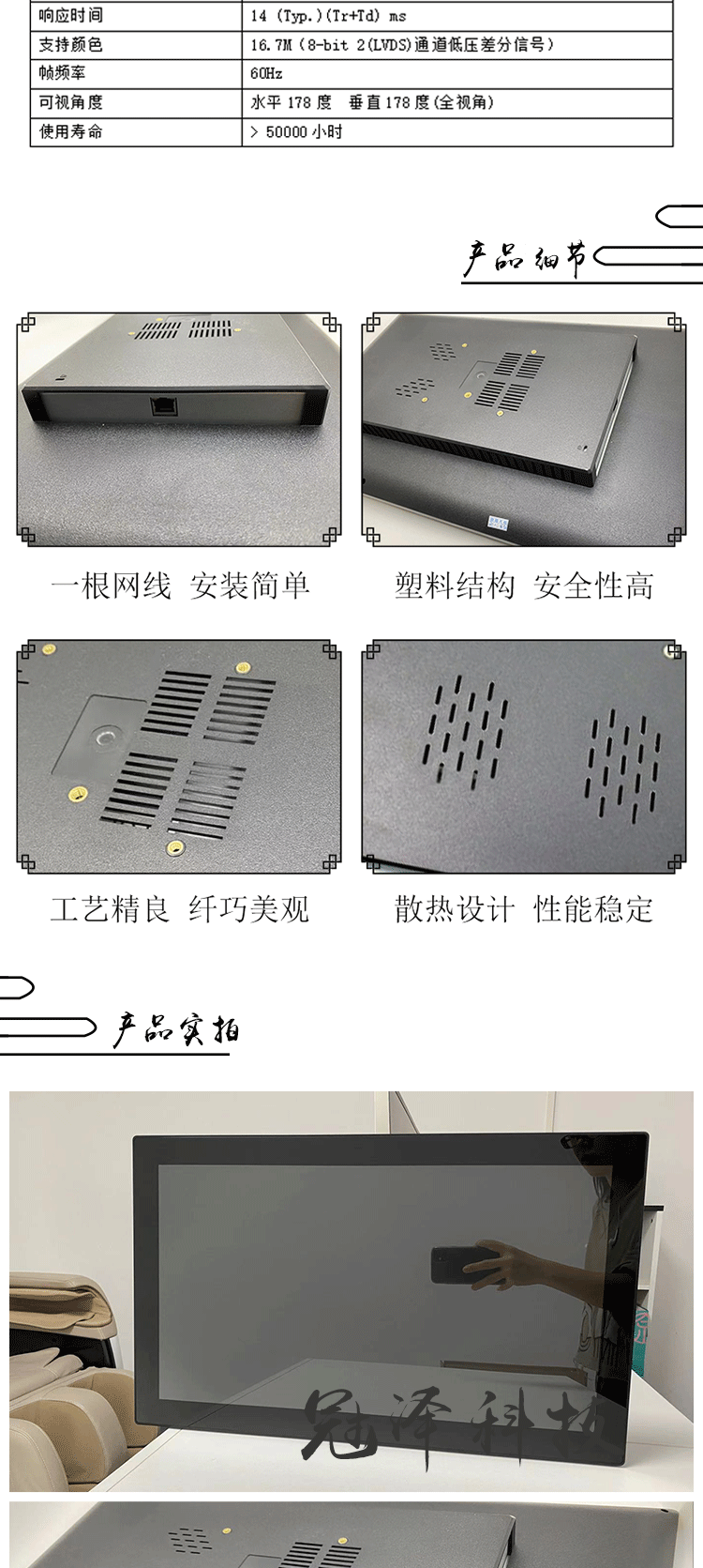 2.使用效用:多种安装方法(壁挂,桌面底座,地板底座等)可以满足您在不同场合的需要;